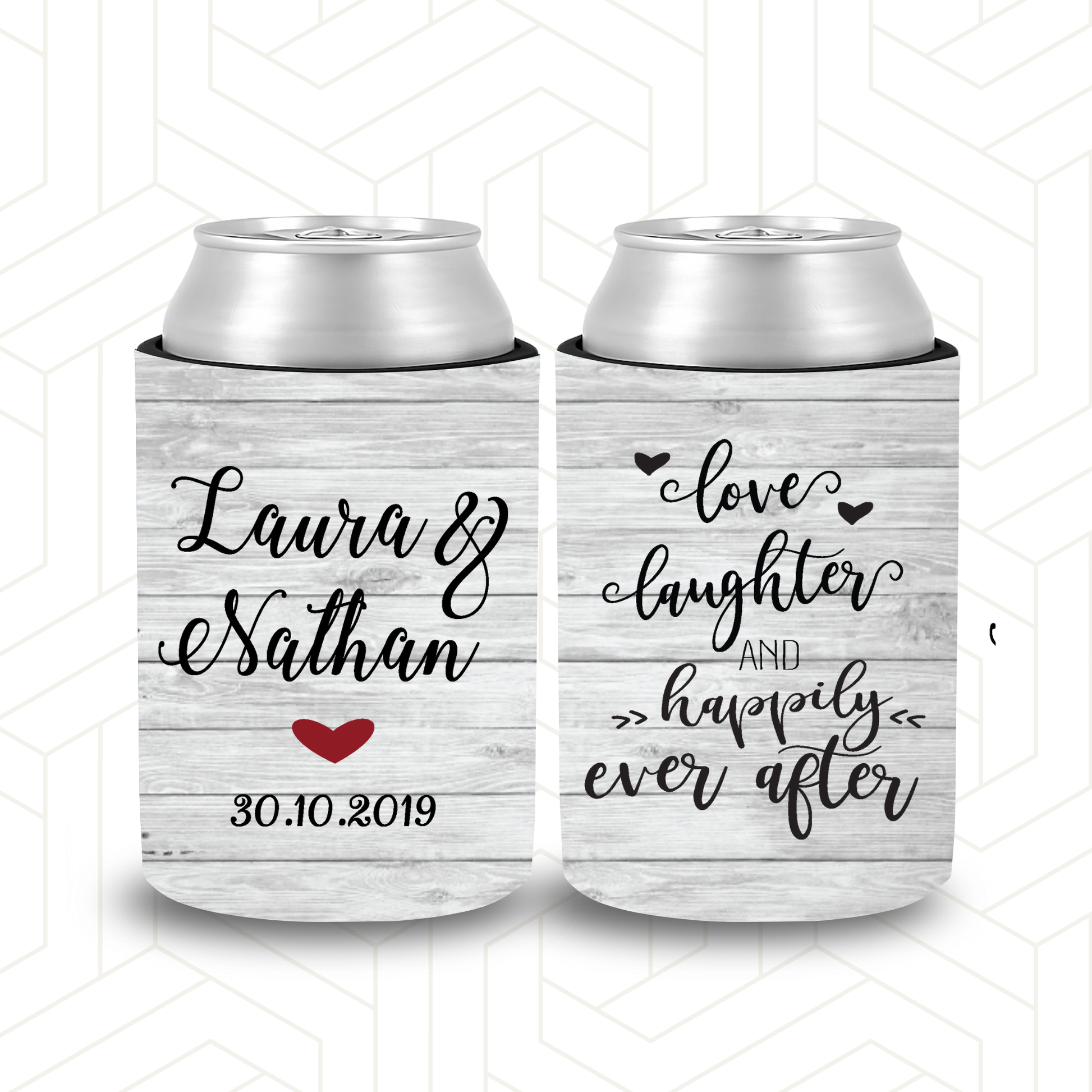 WS056 | Personalised “Love, Laughter & Happily Ever After” Stubby Holder — Custom Name & Date | Wedding Can Cooler