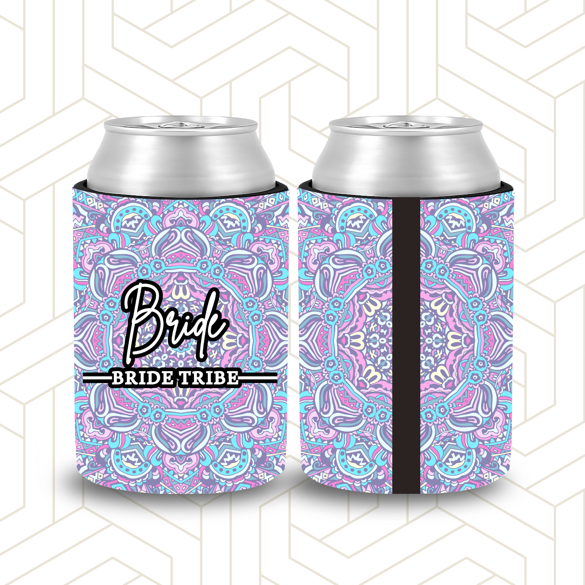 BR014 | Personalised Bridal Party Stubby Holders – Mandala Pattern Brided Tribe