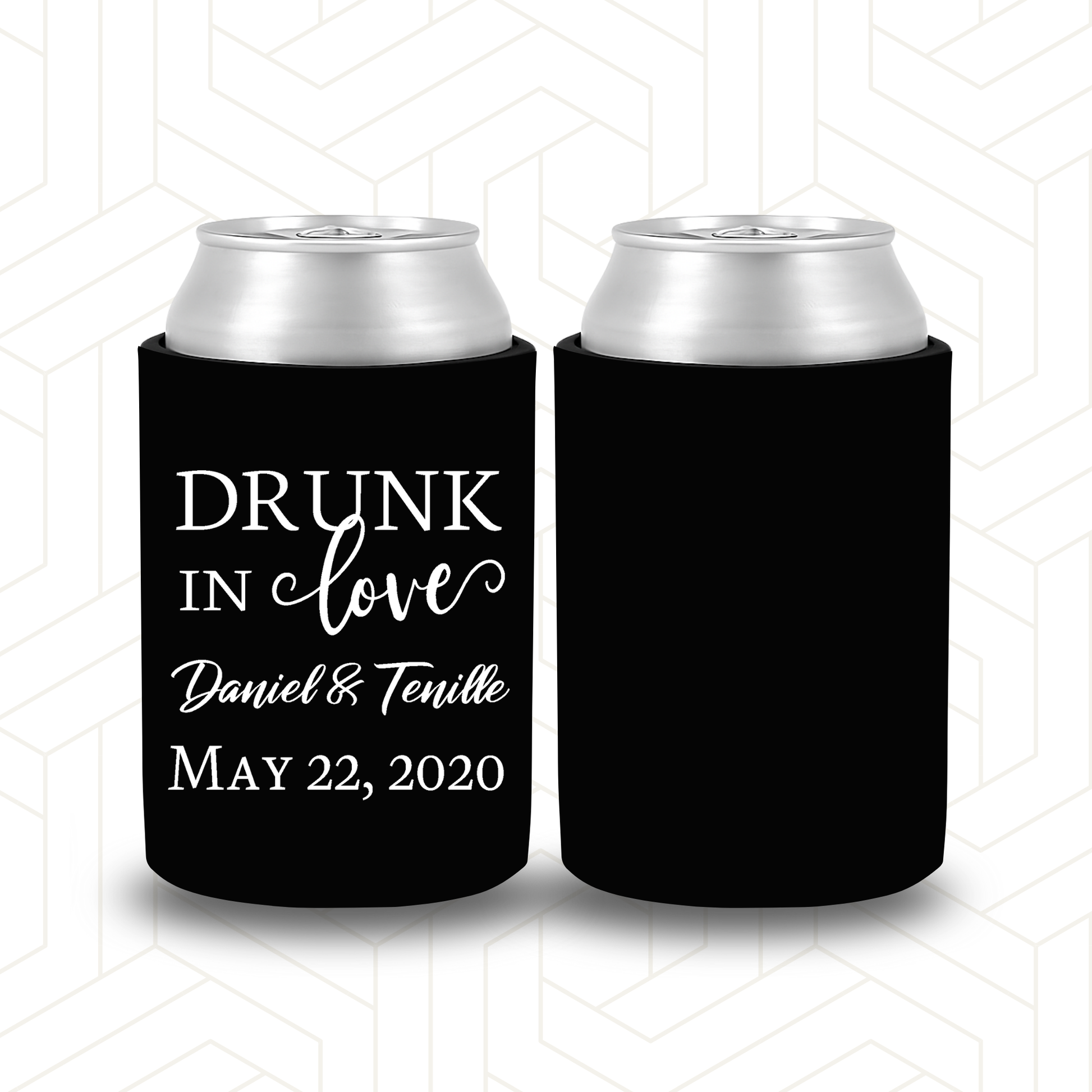 WS020 | Personalised “Drunk in Love” Stubby Holder — Custom Name & Date | Wedding Can Cooler