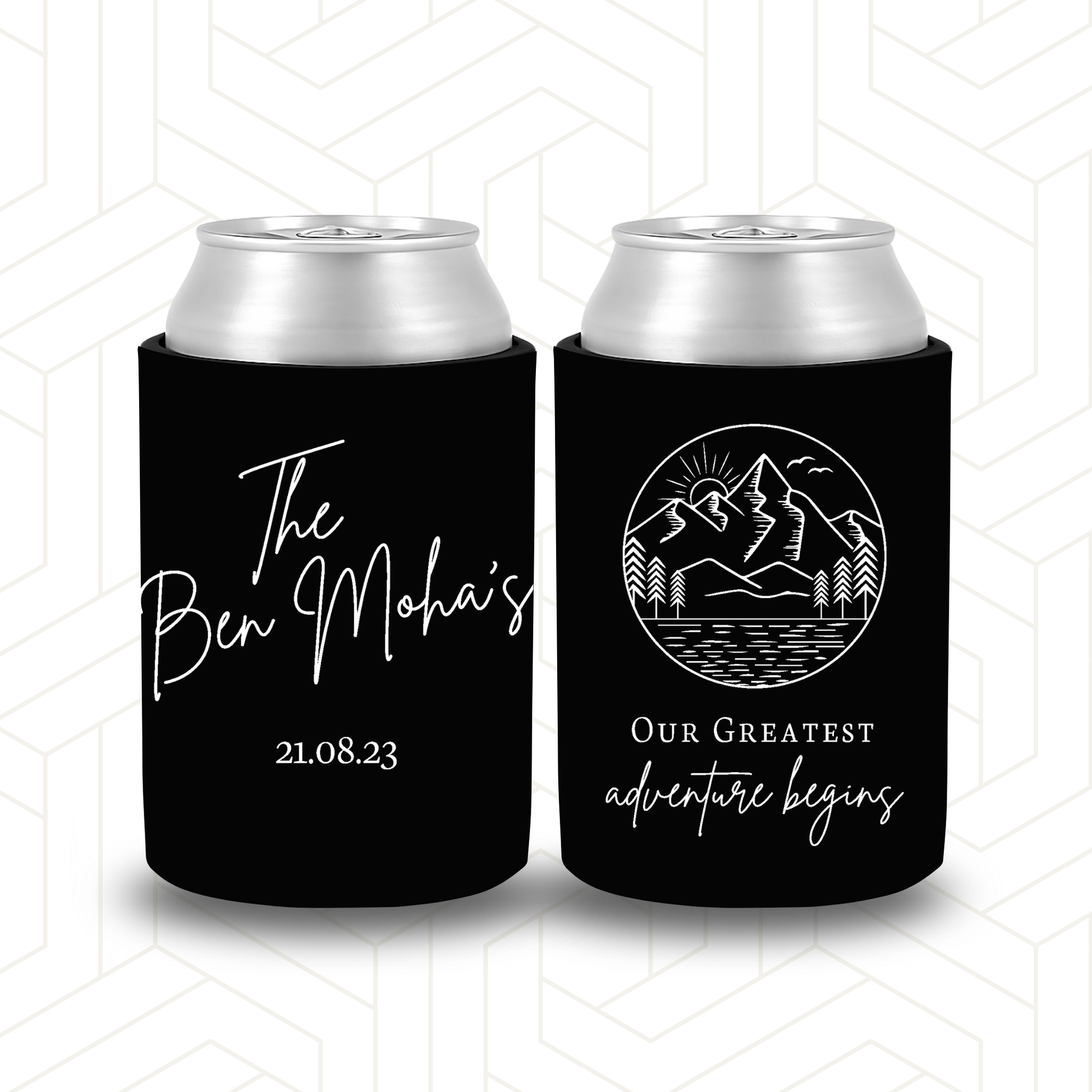 WS023 | Personalised “Our Greatest Adventure” Stubby Holder — Custom Name & Date | Wedding & Engagement Can Cooler